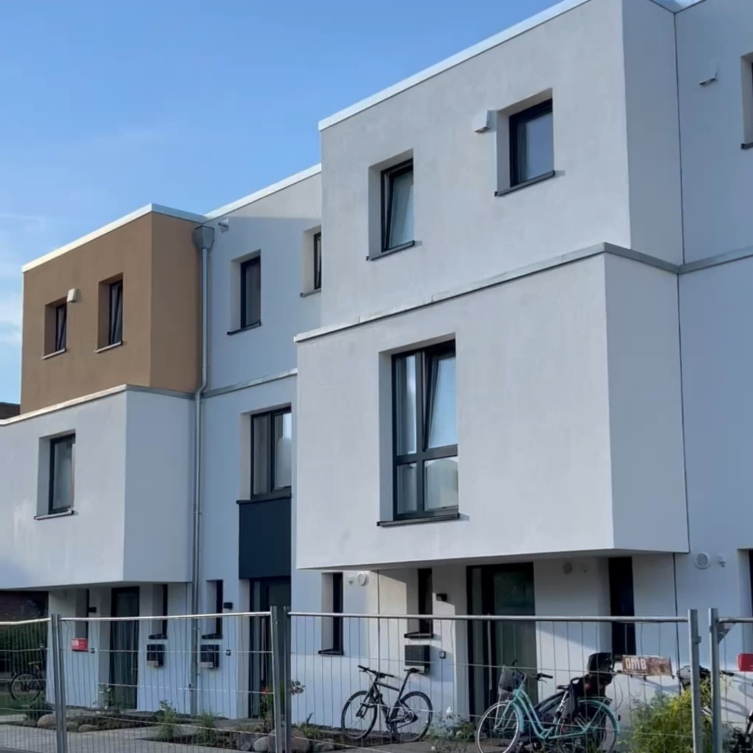 Mehrfamilienhaus in Lüneburg mit bodentiefen, energieeffizienten Kunststofffenstern mit Dreifachverglasung.